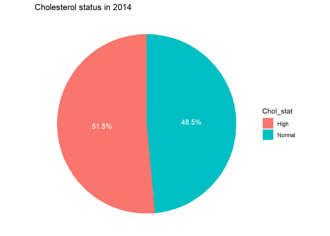I want to create pie chat to show persons having high cholesterol in 2014.