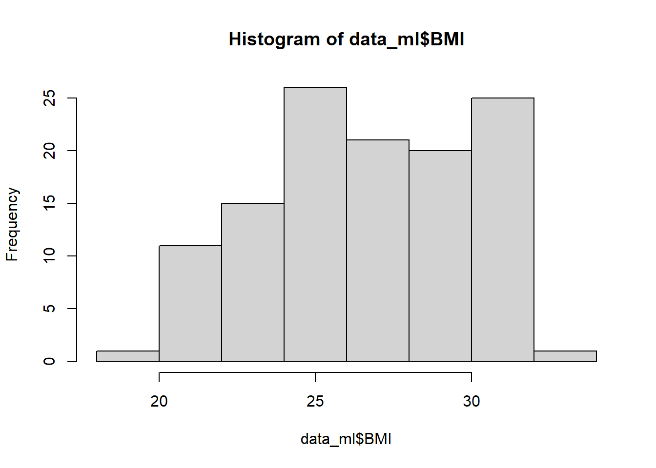#Featuring Engineering In this part, a new variable created for Body Mass Index (BMI) and creating histogram to visualize the BMI.